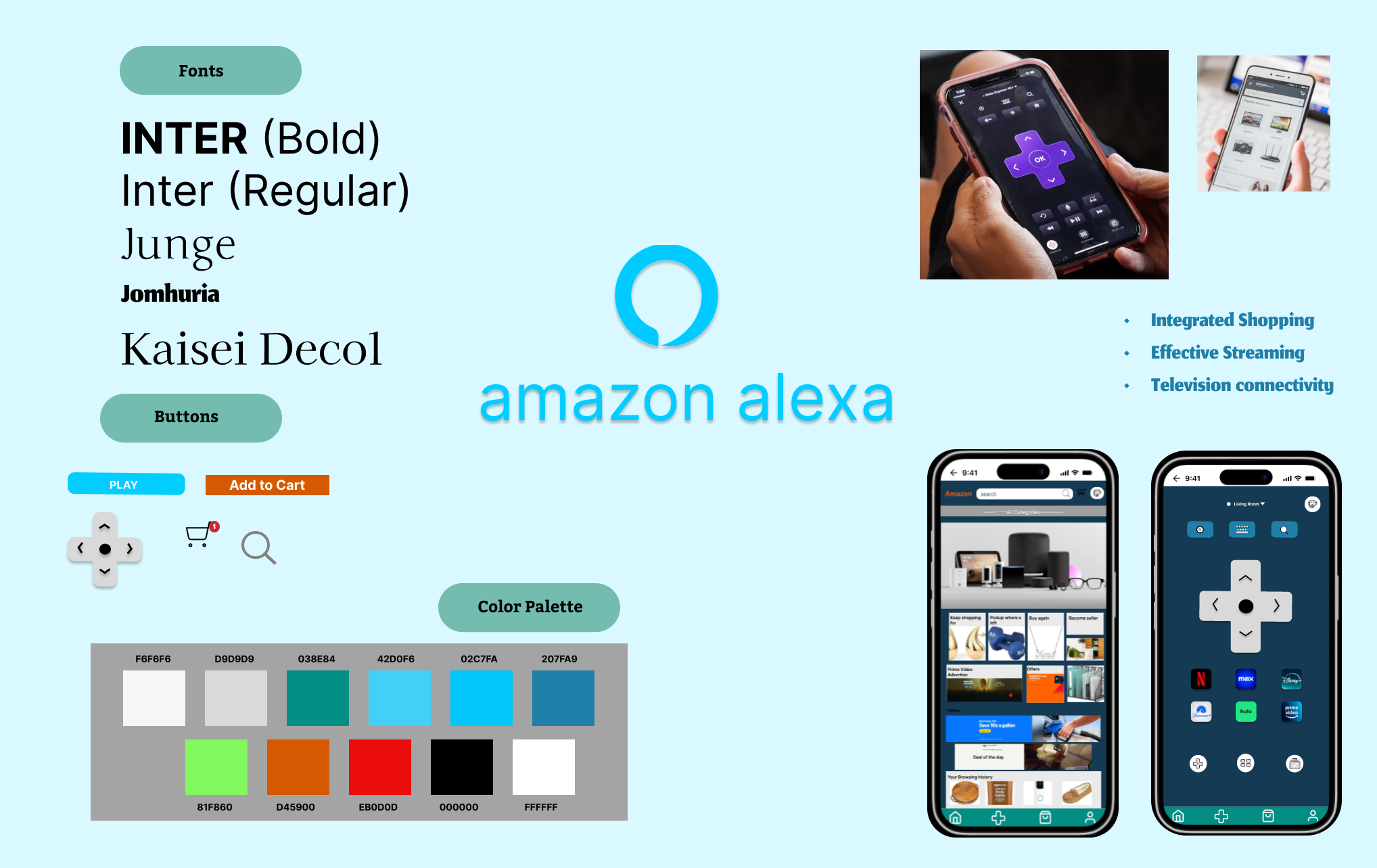 The Roku x Amazon Alexa Integrated App project began as an original concept exploring how entertainment and smart home ecosystems could merge into one seamless platform. The idea centered on allowing users to control Roku content, smart devices, and even shop directly through Alexa voice commands a unified experience bridging convenience, personalization, and interactivity. Although similar integrations later appeared through Amazon Prime and product-linked ads that users can now add to their cart, this project was envisioned before it became a mainstream concept, highlighting early recognition of a growing market opportunity. By developing low-fidelity wireframes that combined Roku’s content navigation with Alexa’s voice-driven capabilities, this project demonstrated how cross-platform design could enhance engagement and simplify daily digital interactions. It serves as both a proof of foresight and a foundation for future innovation, showing how early ideation can align closely with real-world product evolution