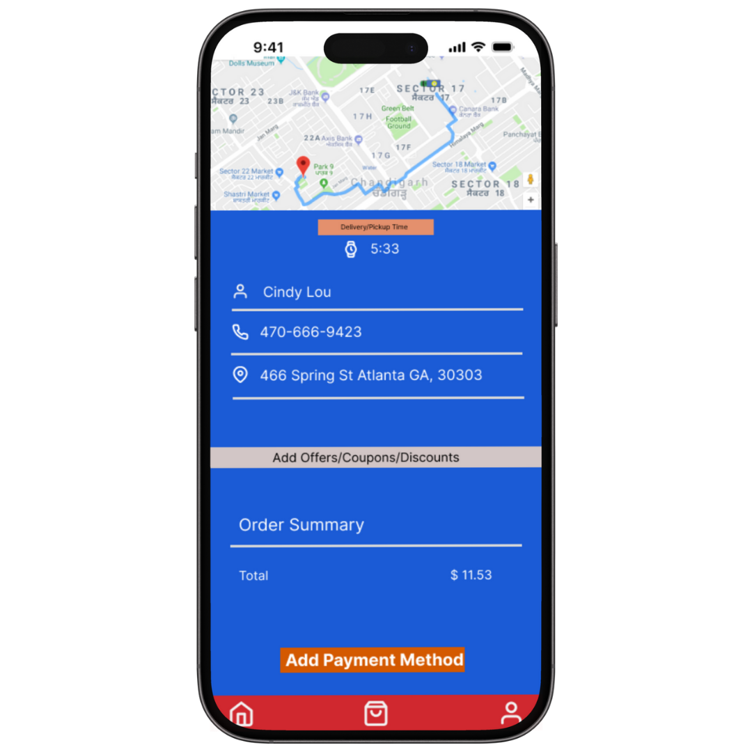 My user flow for the restaurant app starts when users open the app and land on an intuitive homepage, where they can easily browse the menu, check out restaurant details, and view any promotions. From there, they can either explore the full menu or search for specific dishes or restaurants. After making their selection, users are guided to customize their order, review it, and proceed to payment, where they can choose between delivery or pickup options. Once the order is confirmed, I include an order tracking screen that allows users to follow the delivery status or save the order for future use, ensuring a smooth and efficient experience from start to finish.